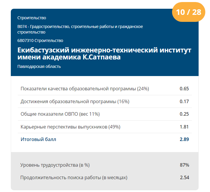The Department of Construction provides training in the bachelor's degree program. - 6B07310 – Construction