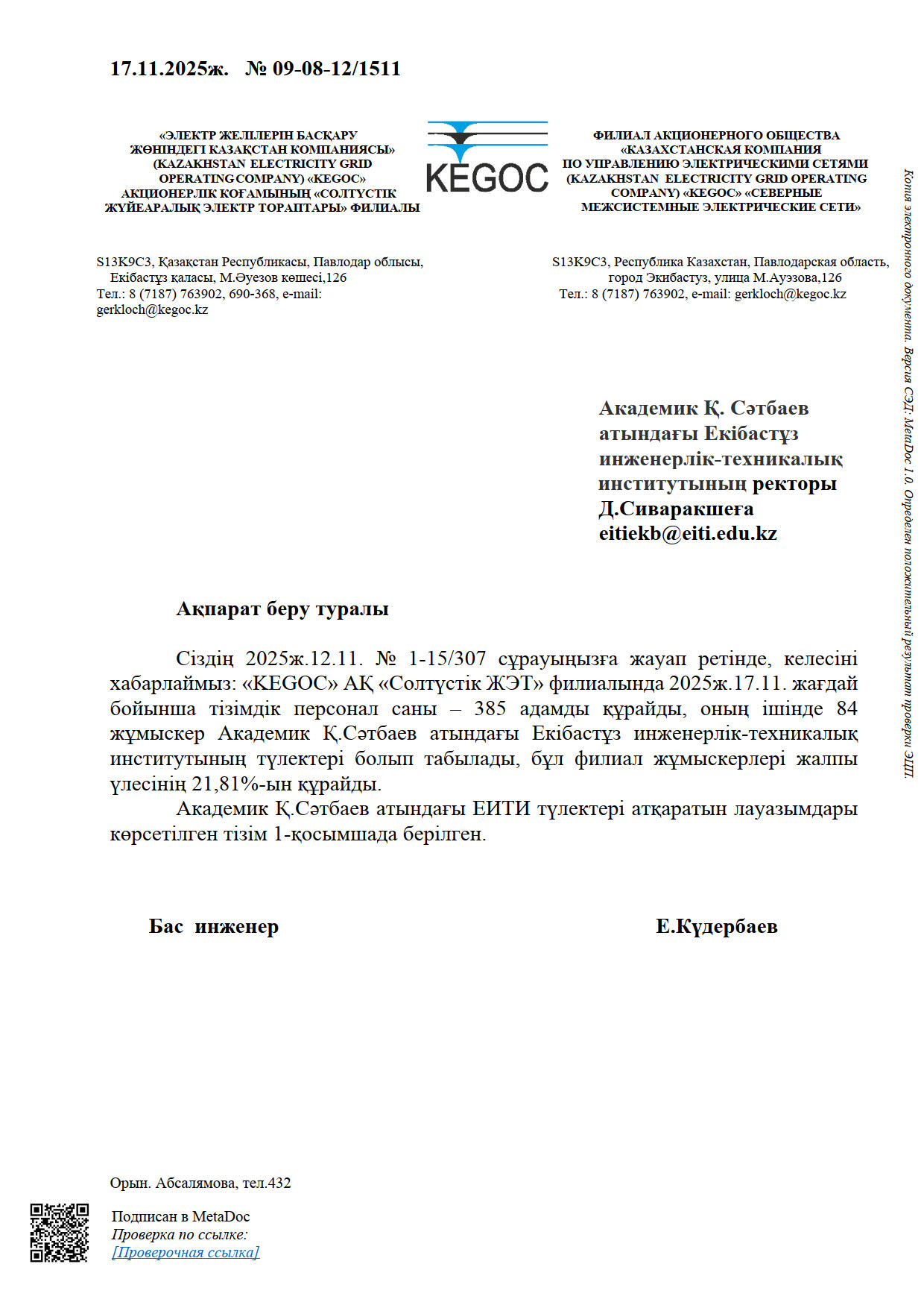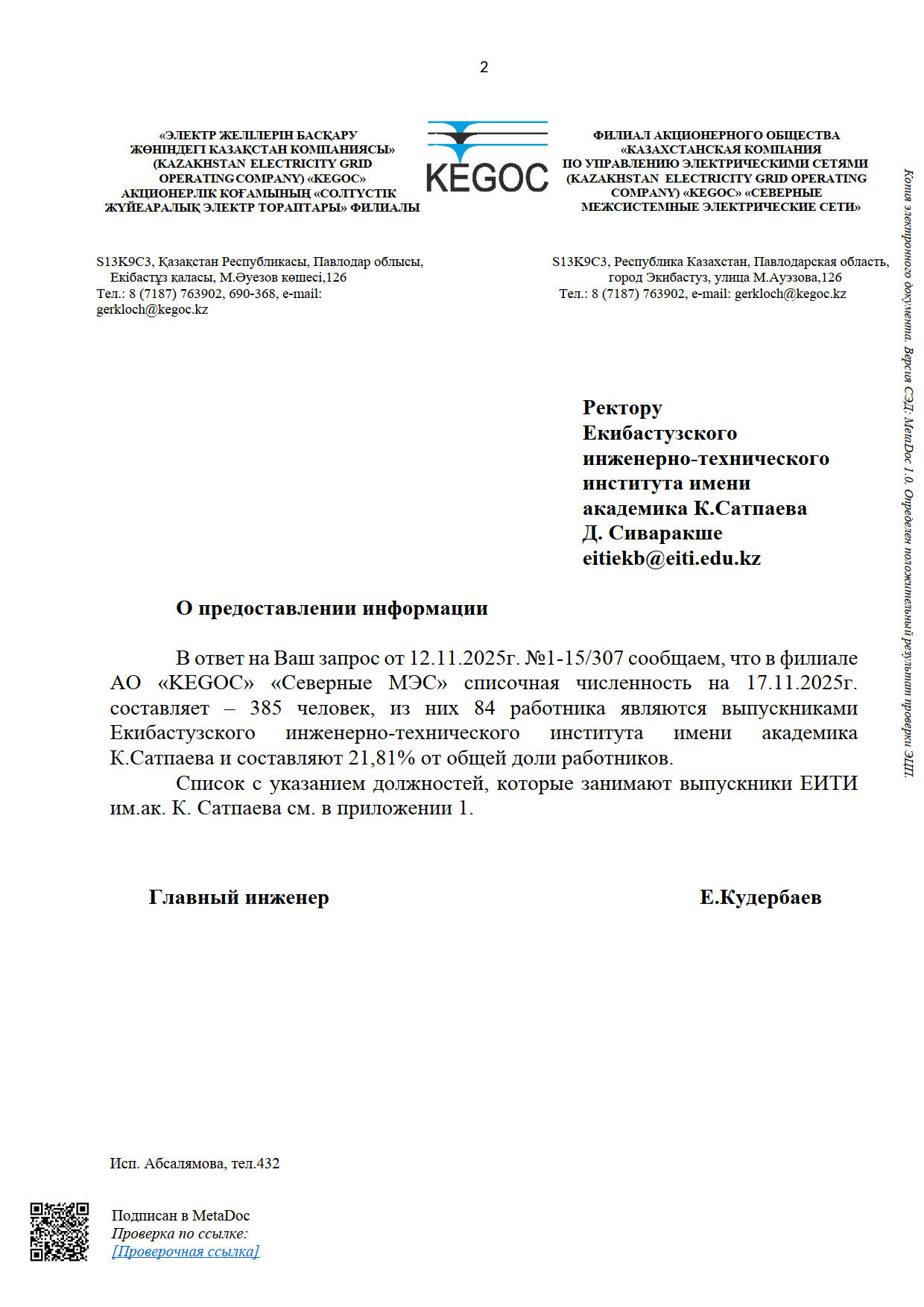 ЕИТИ дипломы бар қызметкерлердің тізімі