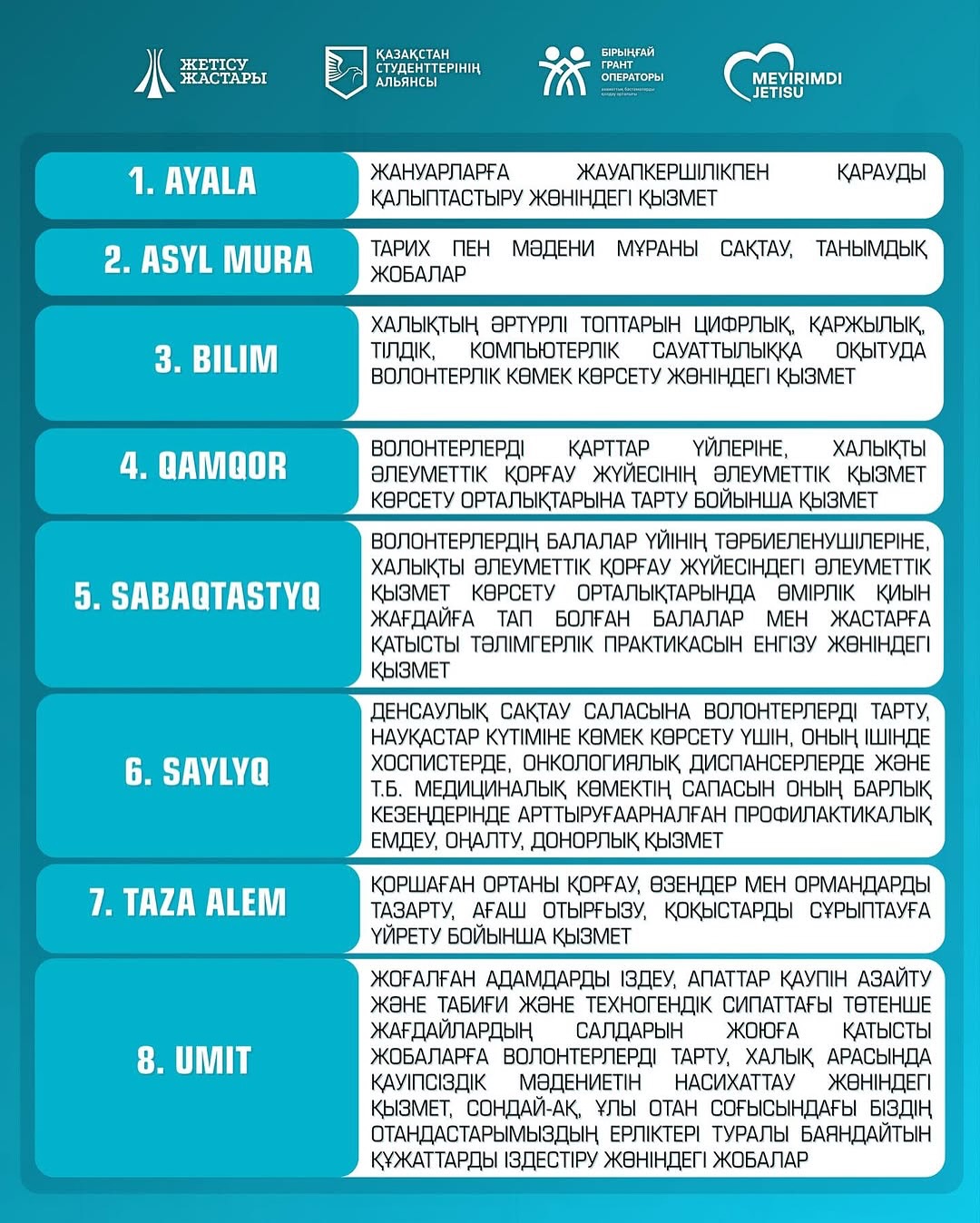 Жастардың игі бастамаларын қолдауға арналған байқау 8 бағыт бойынша өтеді: