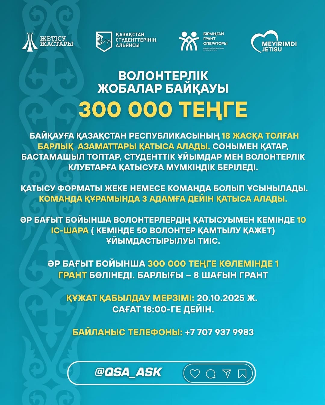- 18 жастан асқан барлық азаматтар, бастамашыл топтар, студенттік ұйымдар мен волонтерлік клубтар қатыса алады.