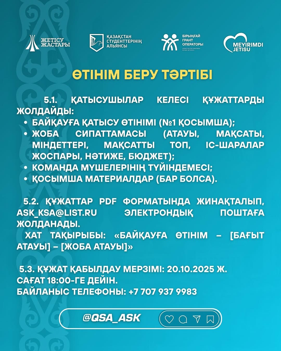 - Өтінімдер ask_ksa@list.ru поштасына қабылданады.